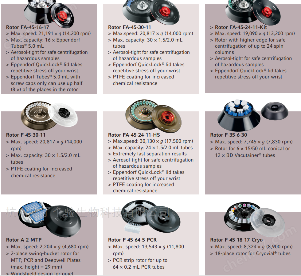 Eppendorf 5425/5425 R離心機配備了24位固定角轉子,能夠處理24個1.5/2.0 mL的樣本管。用戶還可以選擇不同的適配器,以適應不同體積的樣本管,例如PCR管和微量離心管。這種靈活性使得設備能夠滿足多種實驗需求。