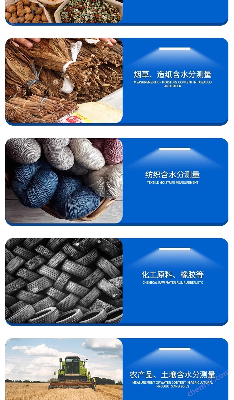 農(nóng)業(yè)科學(xué):分析土壤和農(nóng)產(chǎn)品中的水分含量,以優(yōu)化種植條件和作物產(chǎn)量。環(huán)境科學(xué):研究環(huán)境樣品(如土壤、空氣和水)中的水分含量,以監(jiān)測(cè)和評(píng)估環(huán)境條件。農(nóng)產(chǎn)品質(zhì)量控制:確保收獲和儲(chǔ)存的農(nóng)產(chǎn)品具有適當(dāng)?shù)乃趾浚乐垢瘮『唾|(zhì)量下降。