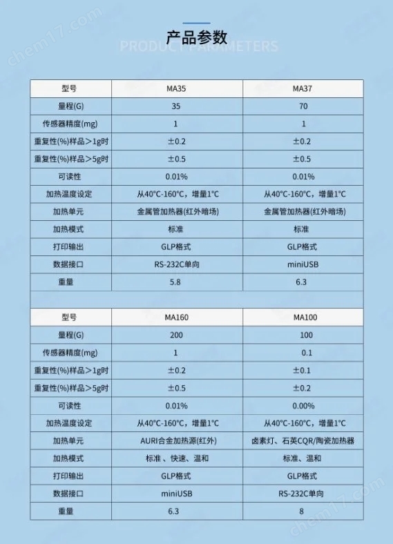 規(guī)格:水分含量分辨率高達(dá)0.01%,樣品容量可達(dá)35克。